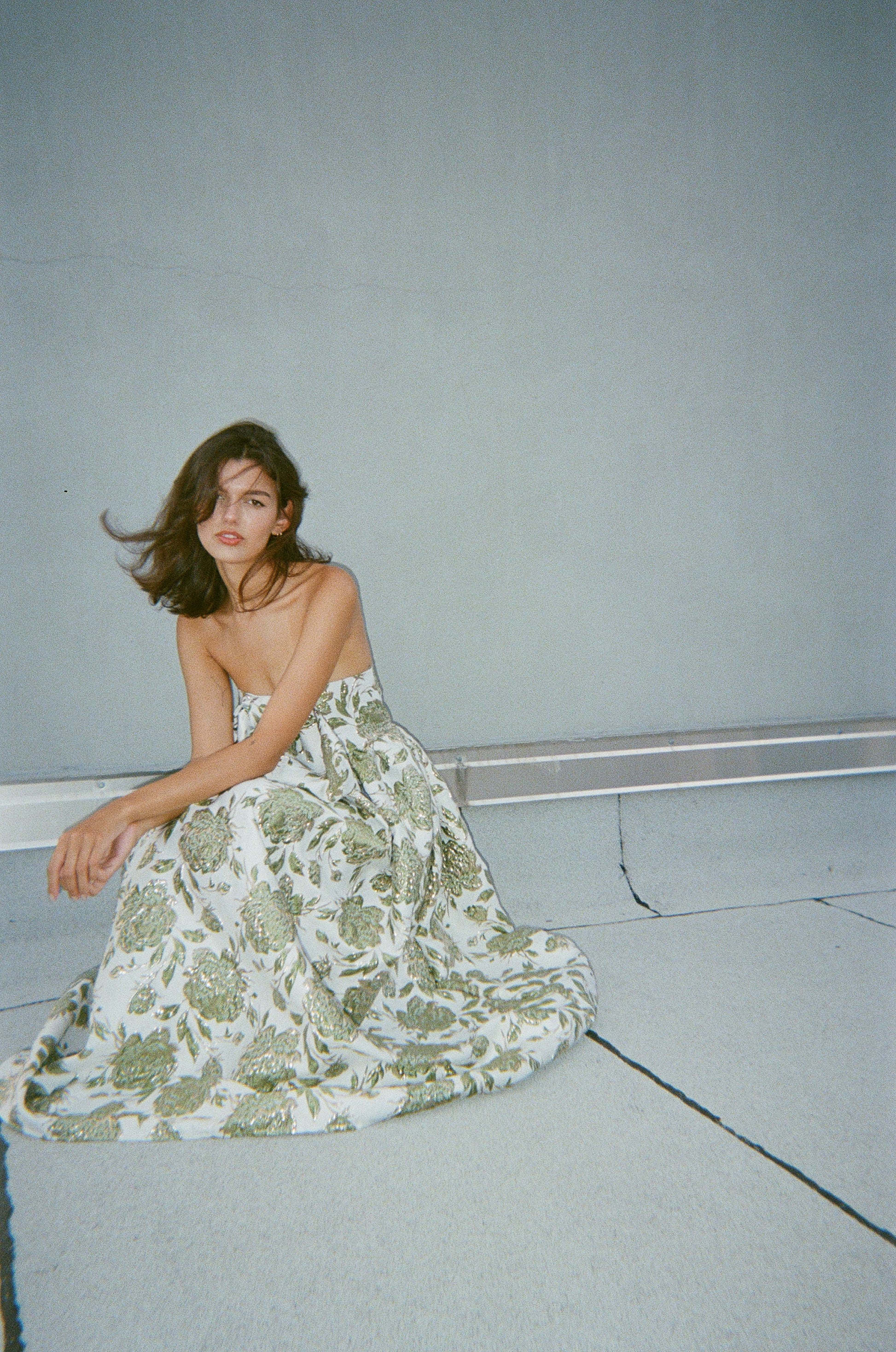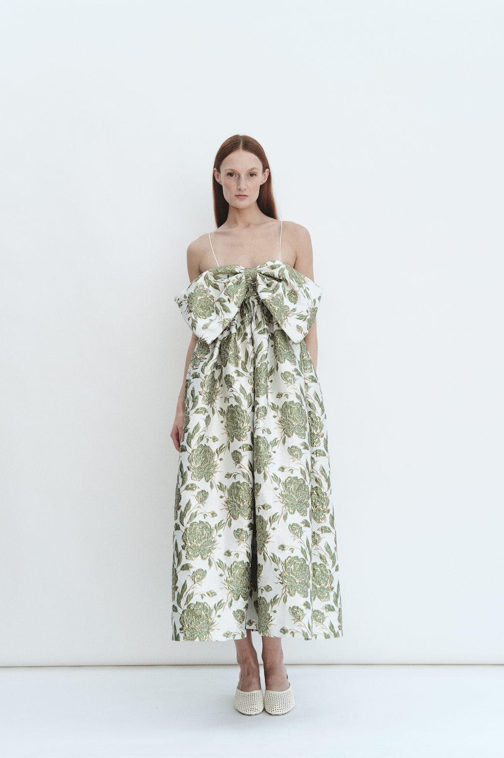 Bow Gown in Emerald Brocade