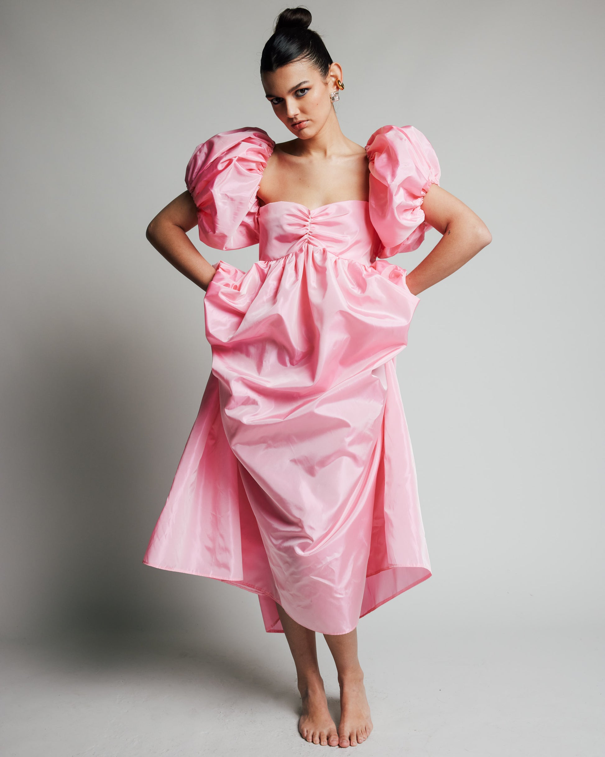This Beautiful Makenna Gown is made from the most beautiful dusty pink taffeta. The perfect puff sleeve for your special occasion.