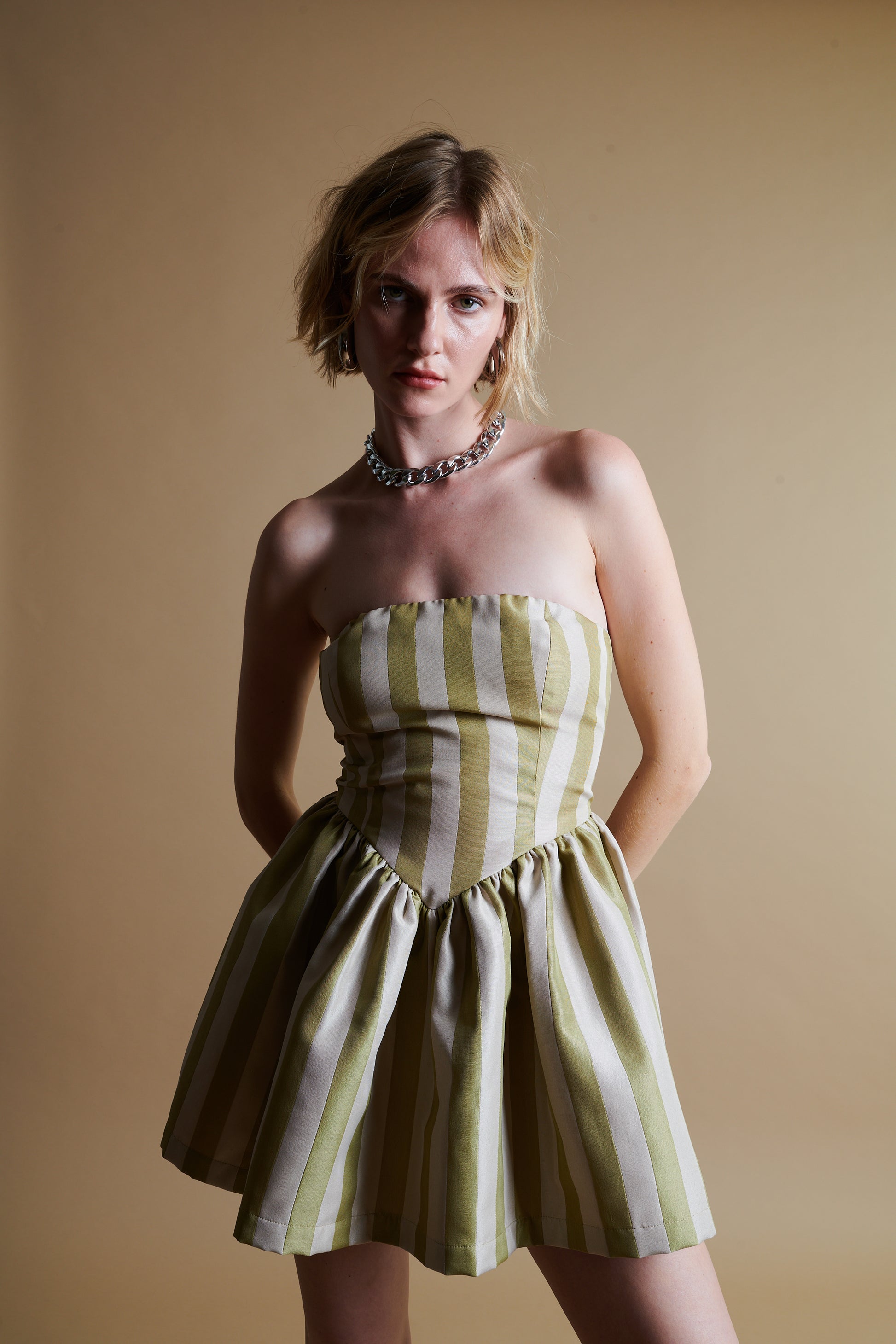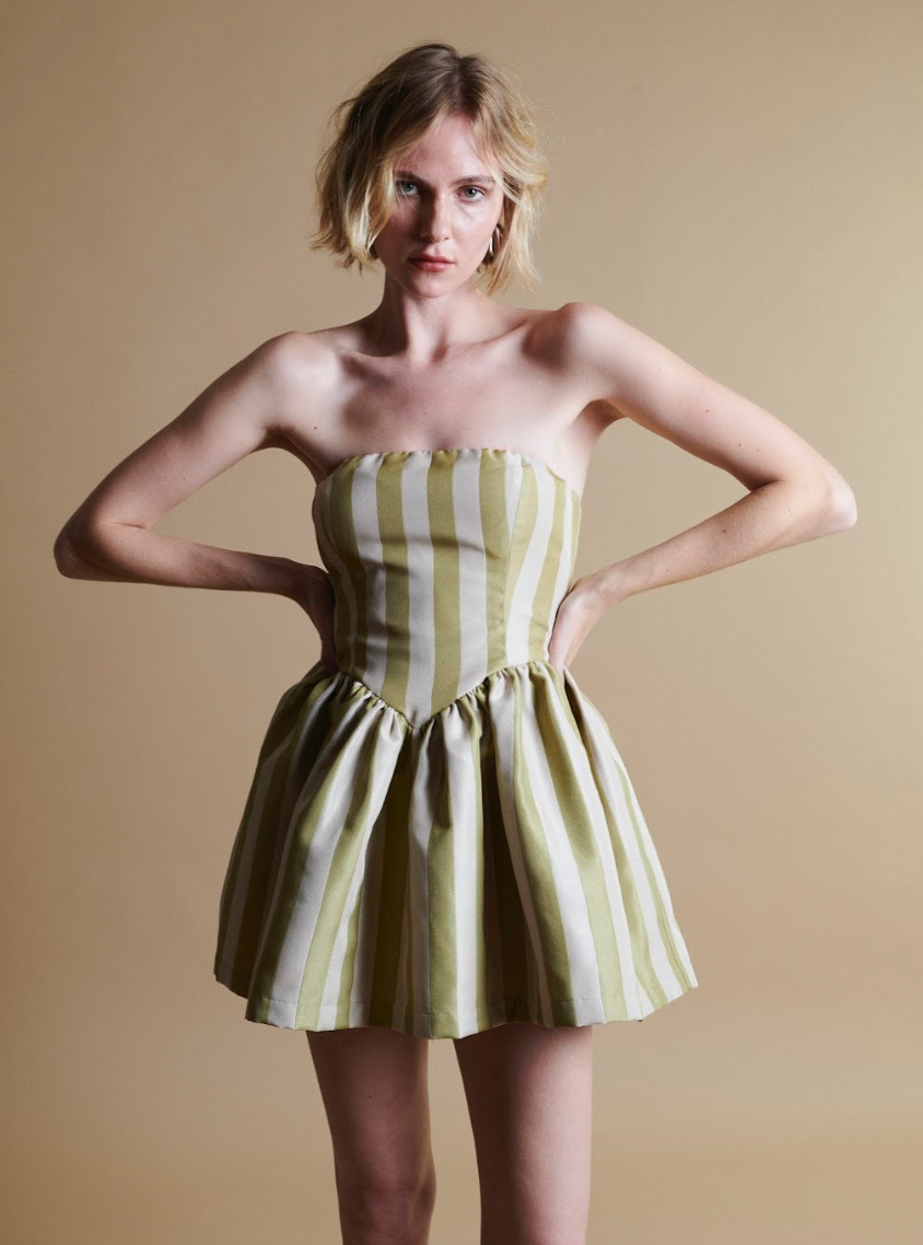 Roxanne Mini Dress in Sage Stripe