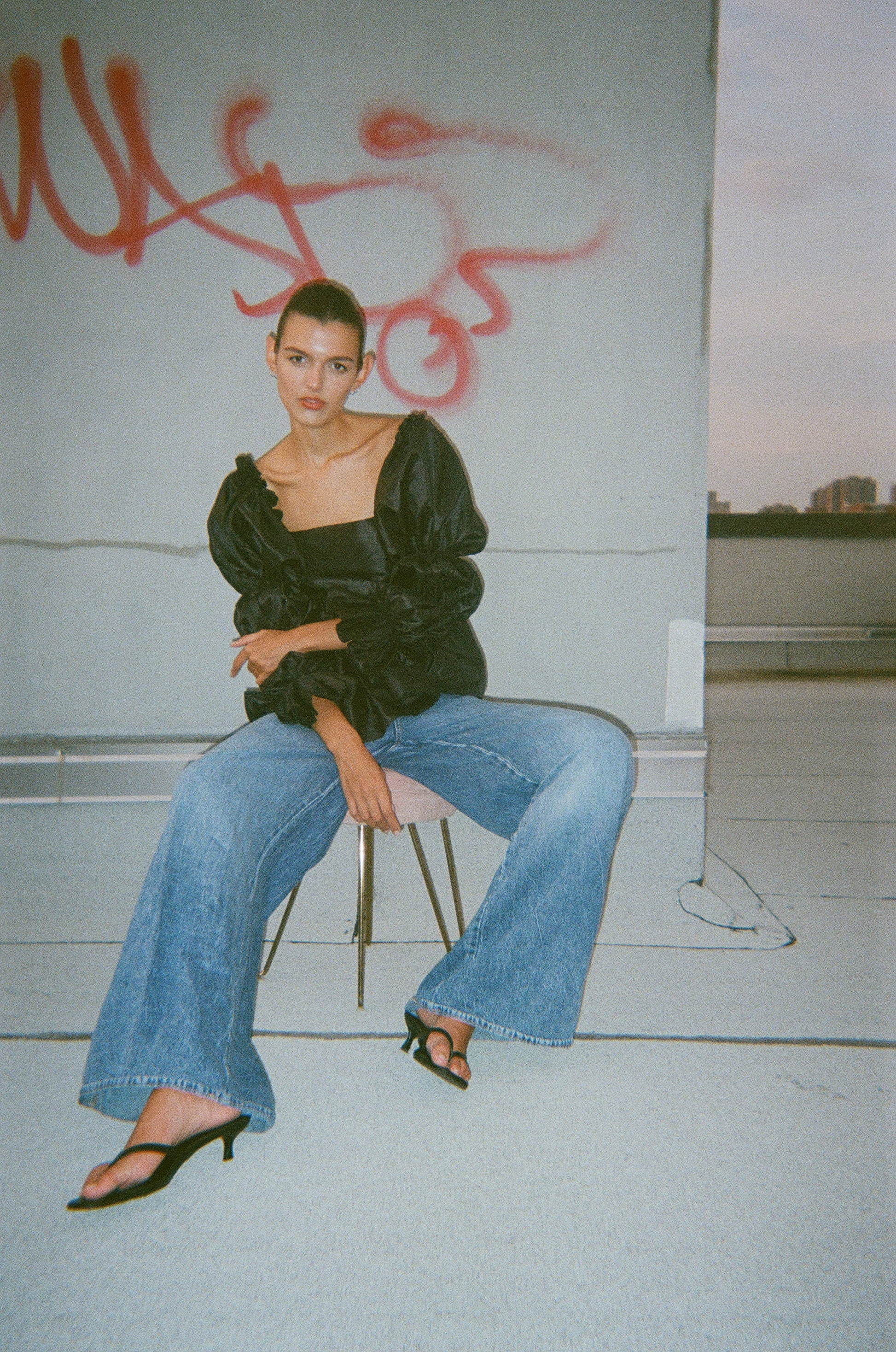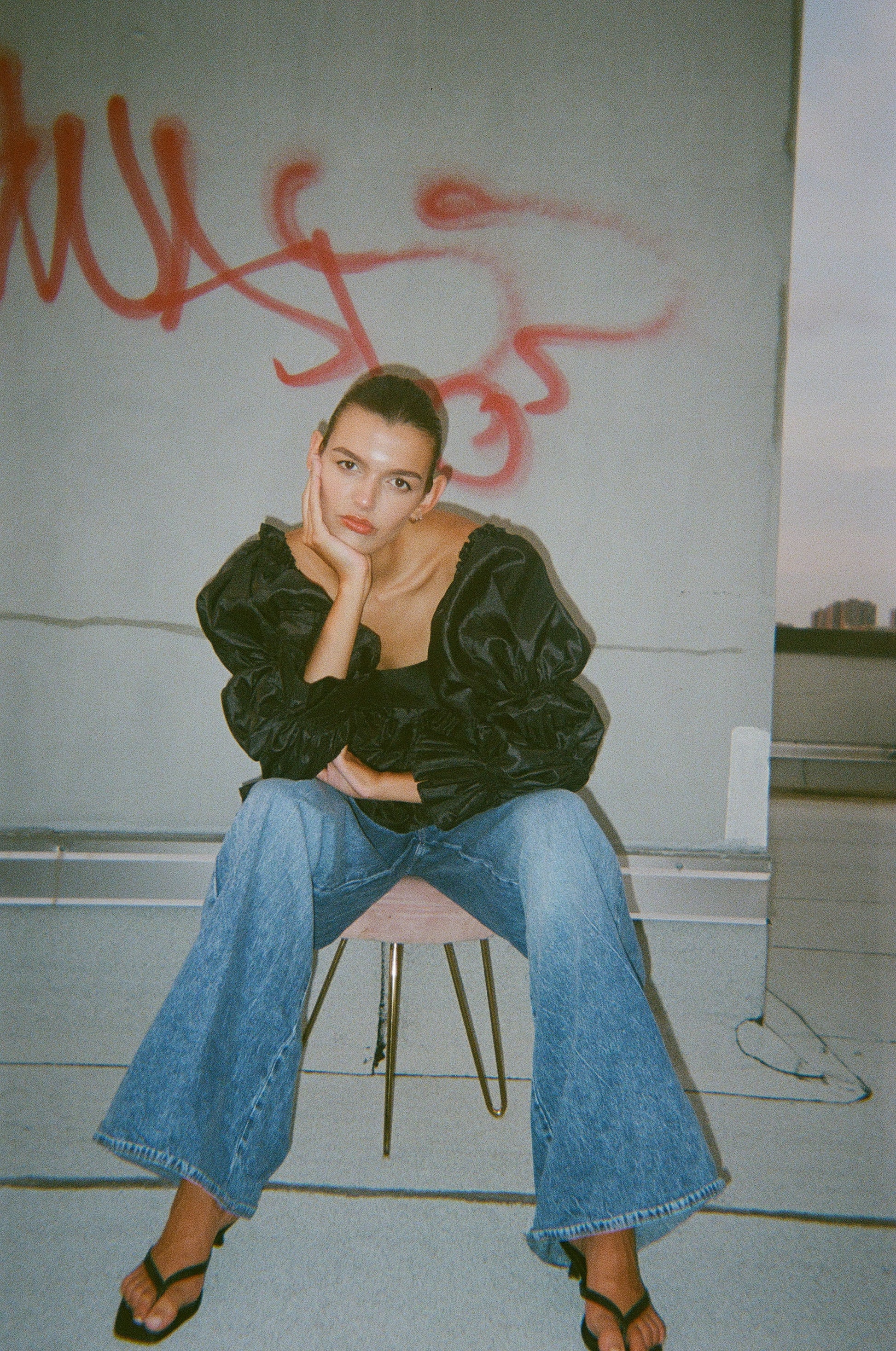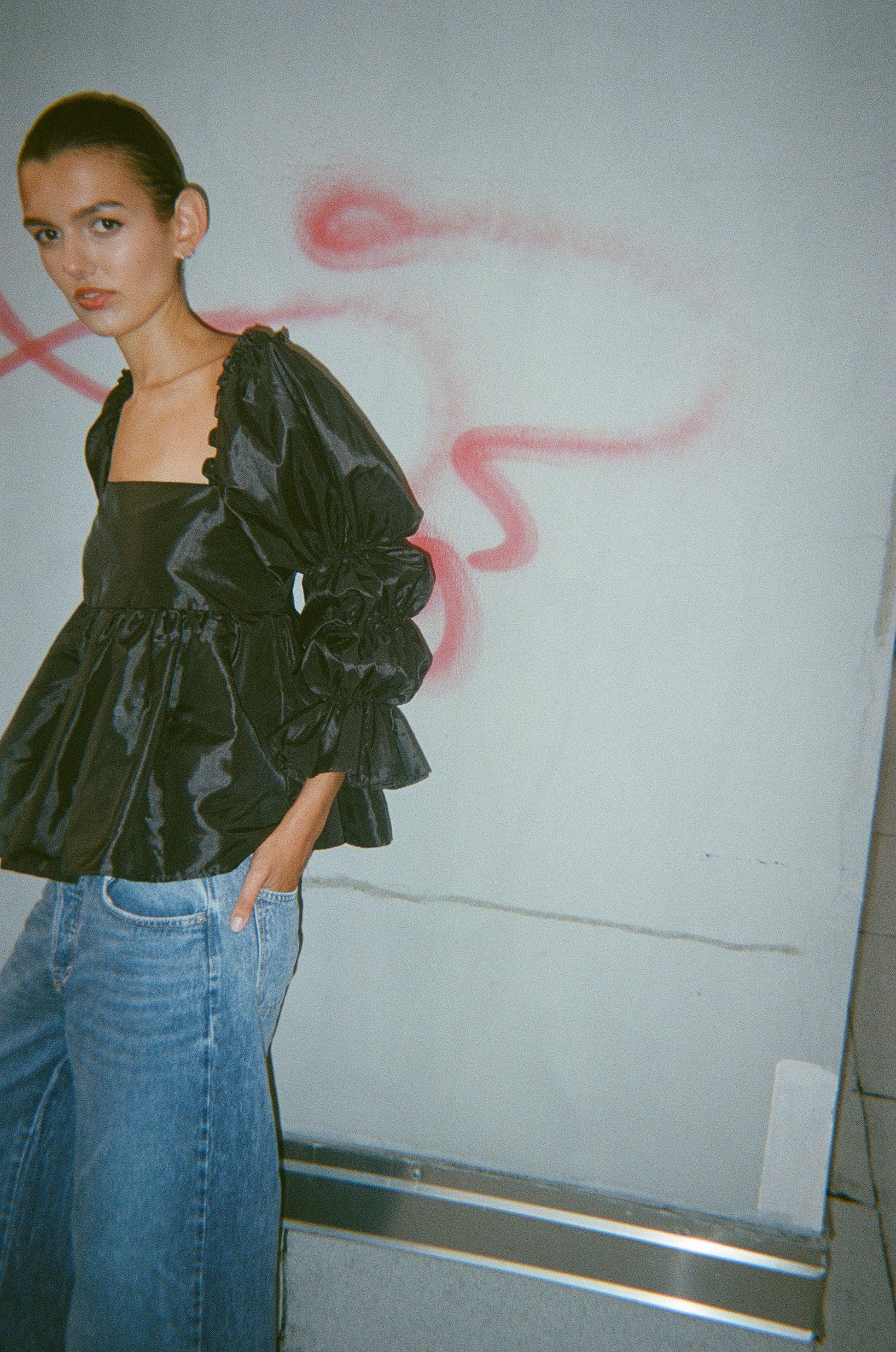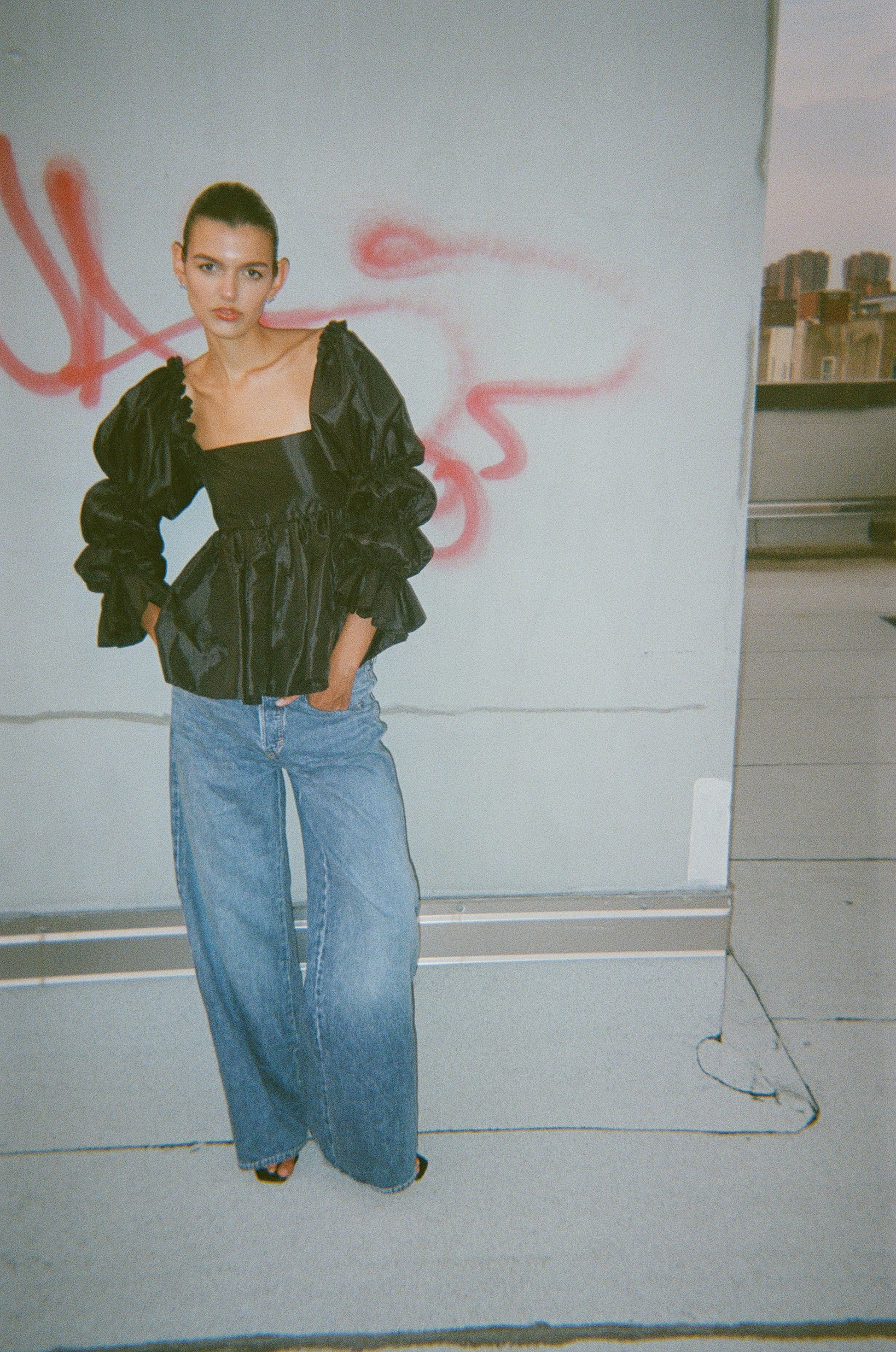 This Roxanne top is available for immediate shipment. This shirt is sized at 38 inches around the chest but can be altered to your chest size upon purchase
