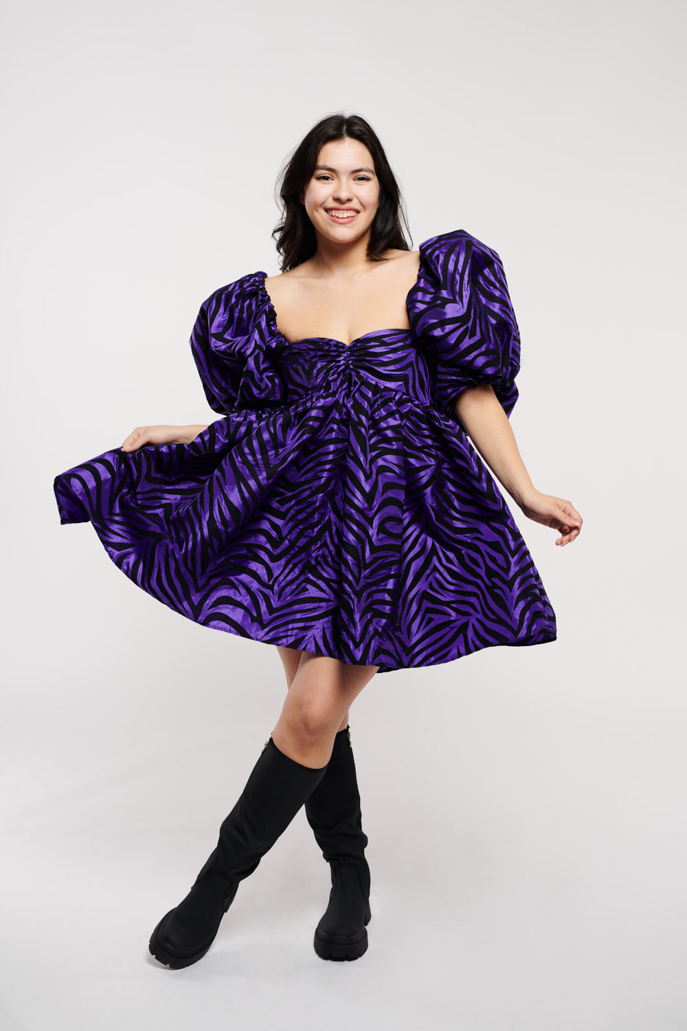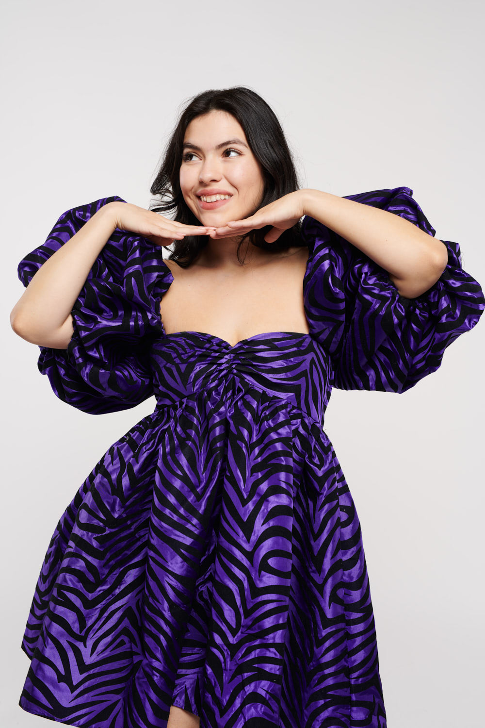 Roxy Dress Zebra Flocked Purple Taffeta